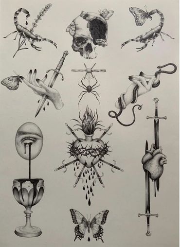 flash tattoos (3x3 in / 4x4 in) *must pick minimum of 4 for $300 or 6 for $400